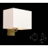 Dekoracyjny kinkiet, wykonany z metalu w kolorze niklu lub mosiądzu.