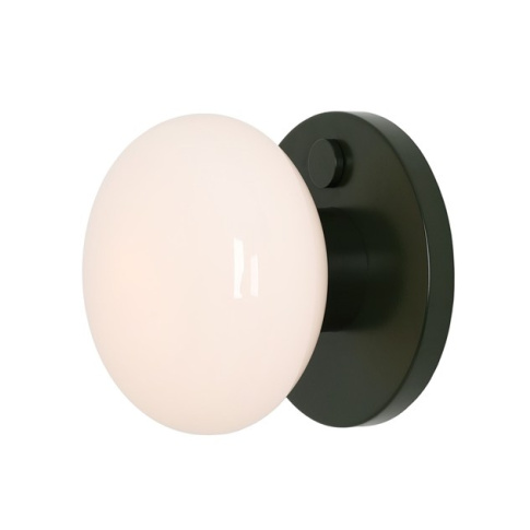 Kinkiet wykonany z metalu, klosz wykonany z mlecznego szkła.