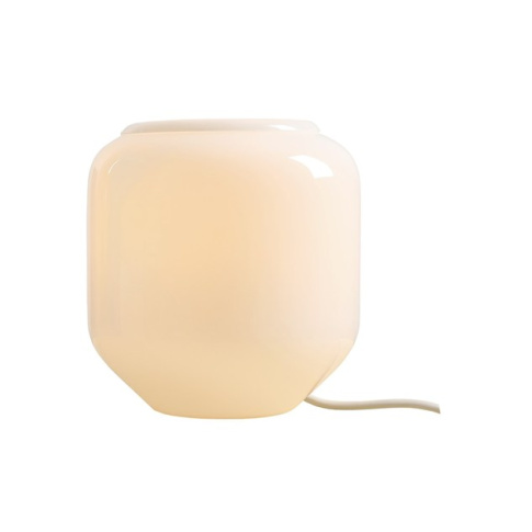 Lampa stojąca z jasnym przewodem w oplocie, klosz wykonany z opalowego szkła.