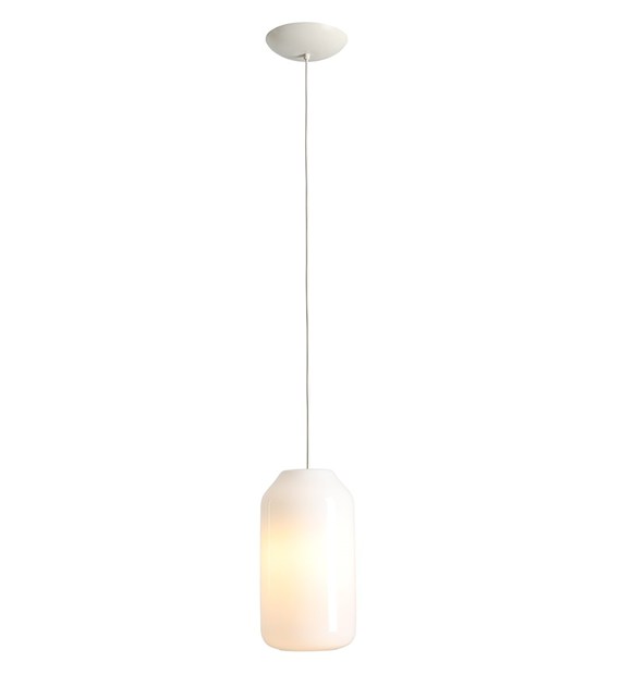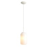 Lampa wisząca z jasnym przewodem w oplocie, klosz wykonany z opalowego szkła.
