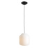 Lampa wisząca z czarnym przewodem w oplocie, klosz wykonany z opalowego szkła.