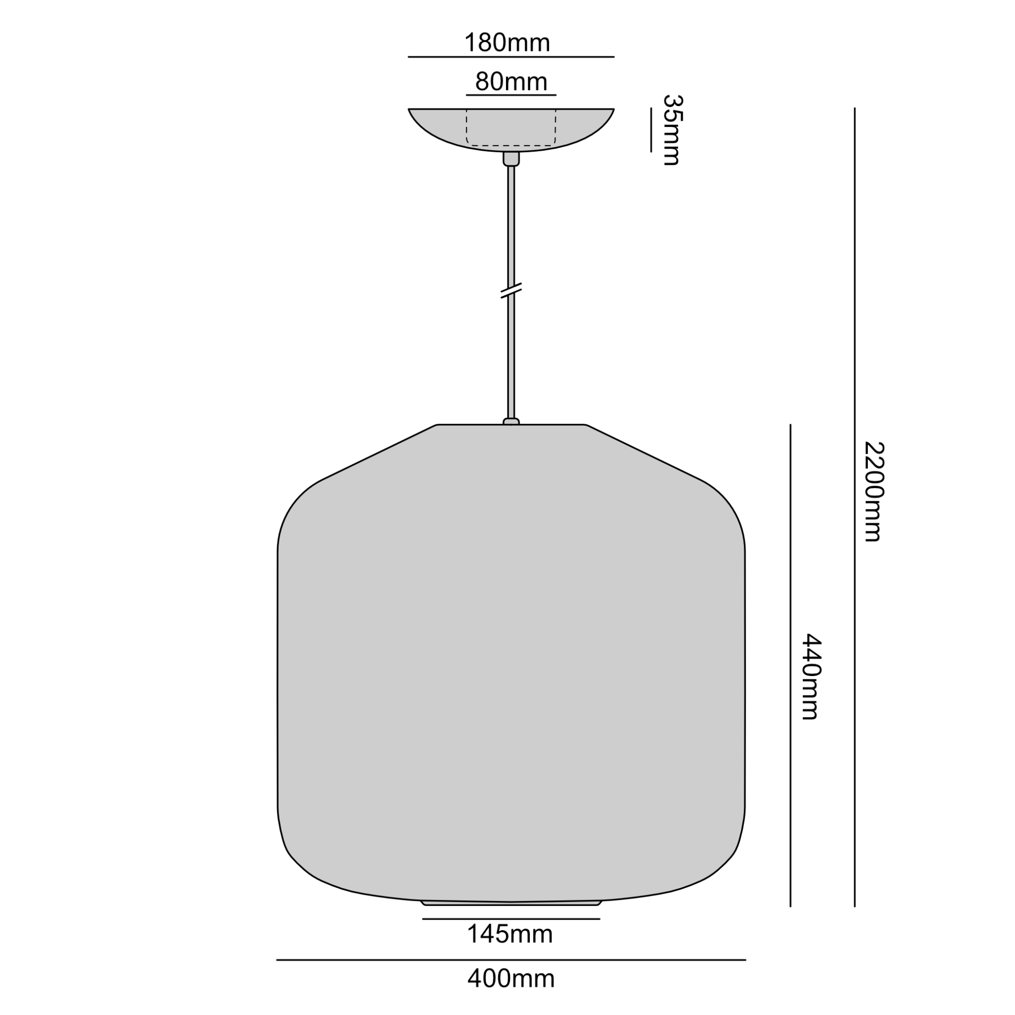Średnica klosza: 40 cm, Wysokość klosza: 44 cm, Długość maksymalna: 220 cm