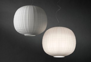 Dekoracyjna lampa wisząca, dostępna w białym lub szarym kolorze.