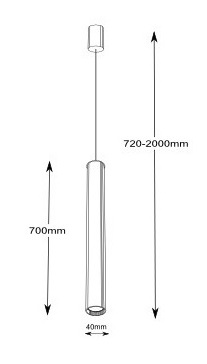 Wysokość klosza: 70 cm, średnica: 4 cm, maksymalne zwieszenie: 200 cm.