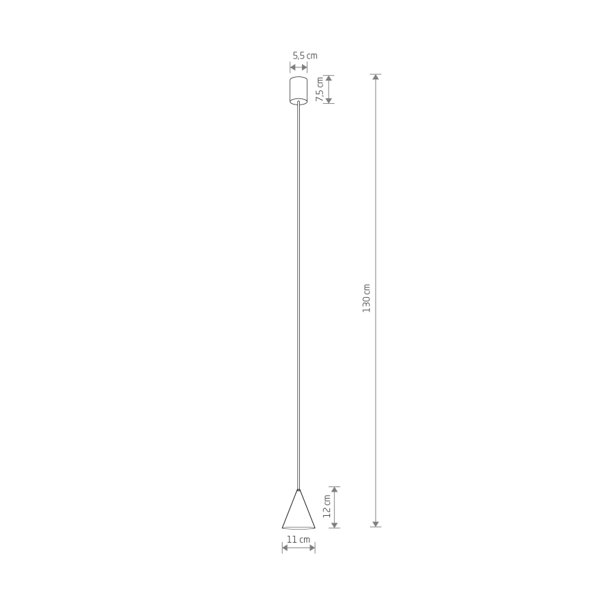 Średnica: 11 cm, wysokość maksymalna: 130 cm.