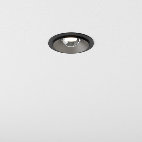 Lampa wpuszczana w sufit, wykonana z aluminium lakierowanego.
