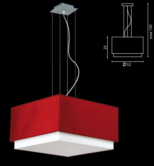 Abażur z materiału, dostępny w kolorze bordowym lub białym.
